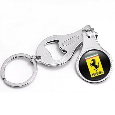 Ferrari Key Chain Ring Nail Clipper Black Classic Rectangle Domed Design