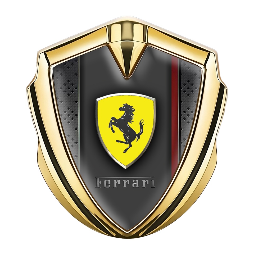 Ferrari Metal Emblem Self Adhesive Gold Dark Mesh Red Lining Design