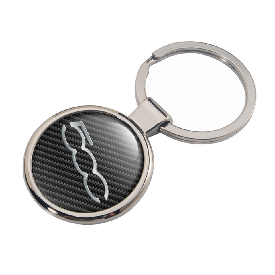 Fiat Abarth 500 Metal Fob Chain Dark Carbon Silver Logo Design