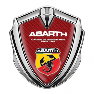 Fiat Abarth Emblem Fender Badge Silver Red Carbon Color Shield Motif