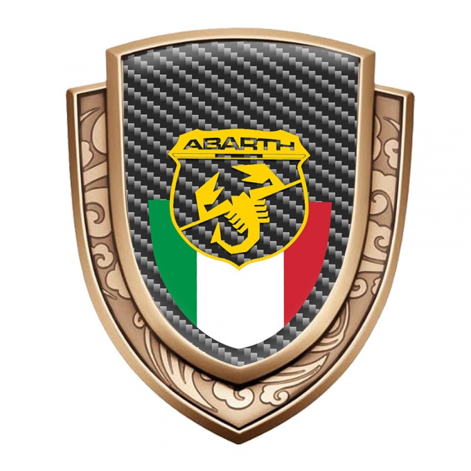 Fiat Abarth Emblem Trunk Badge Gold Dark Carbon Italian Flag Motif