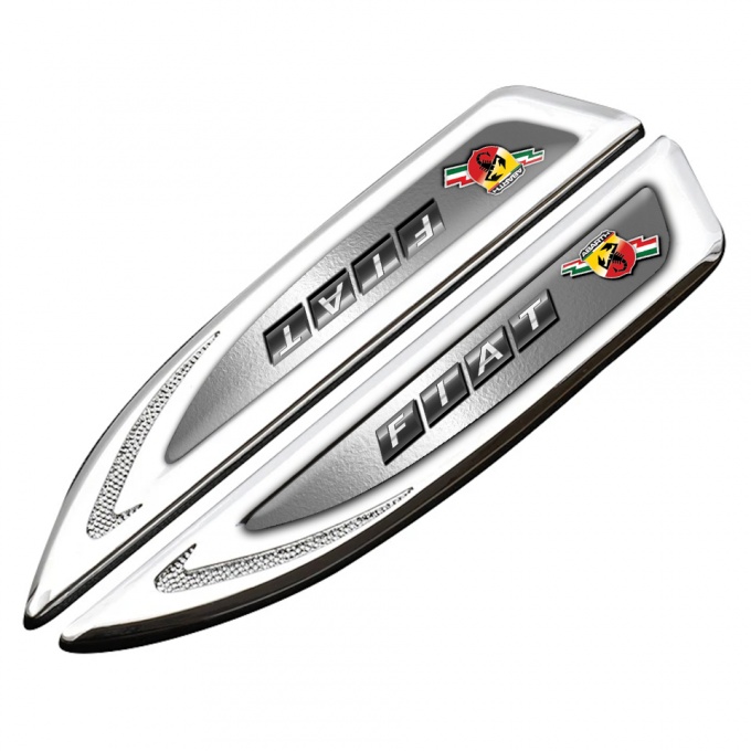 Fiat Abarth Fender Bodyside Emblem Silver Polished Metal Scorpion Logo