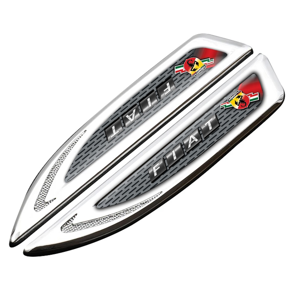 Fiat Abarth Fender Metal Badge Silver Metal Grate Lightning Logo Design
