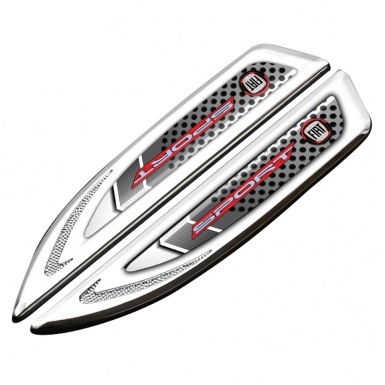Fiat Fender Bodyside Badge Graphite Grey Metal Mesh Crimson Logo Design