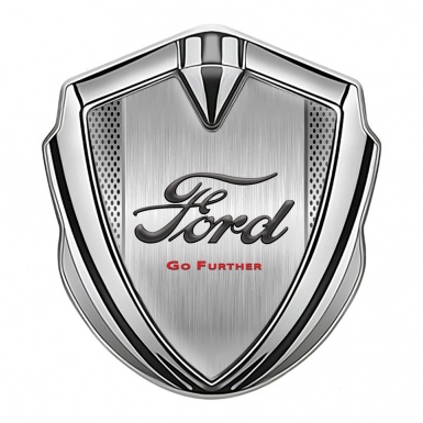 Ford Emblem Badge Self Adhesive Silver Metallic Mesh Go Further Slogan
