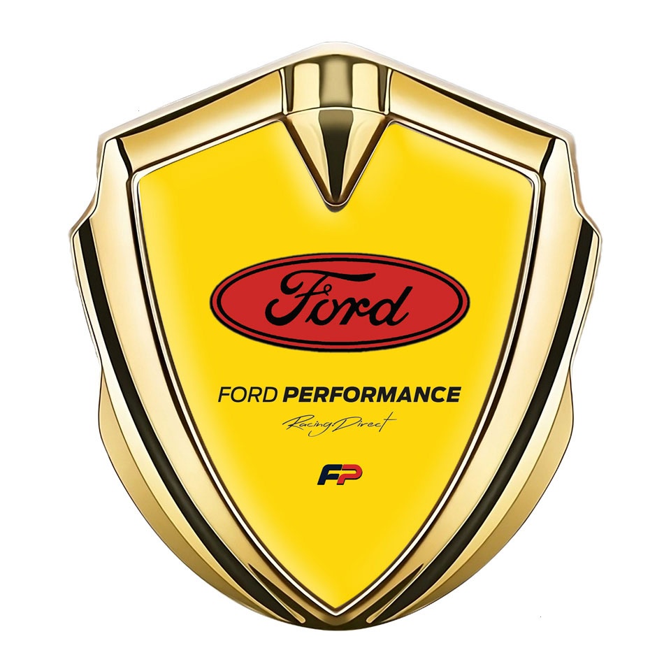 Ford Emblem Car Badge Gold Yellow Background Performance Design