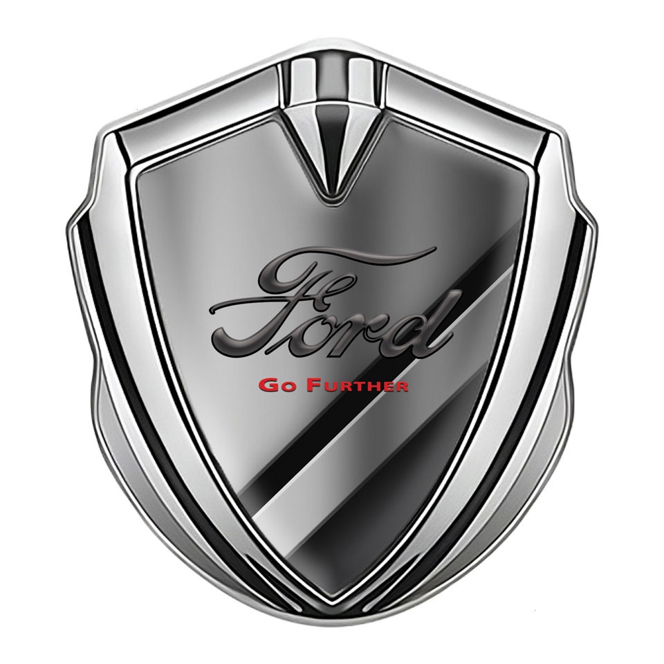 Ford Emblem Car Badge Silver Polished Metal Texture Classic Slogan Logo