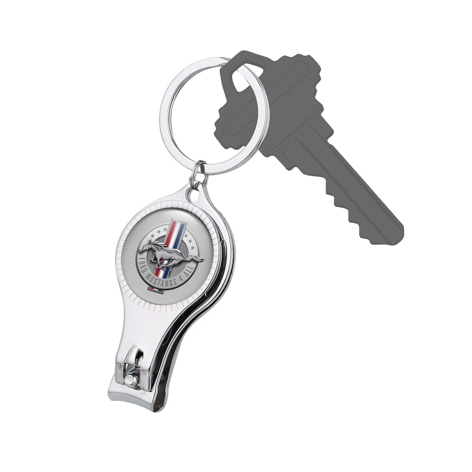 Ford Keychain Ring Nail Clipper Light Grey Chrome Color Domed Emblem