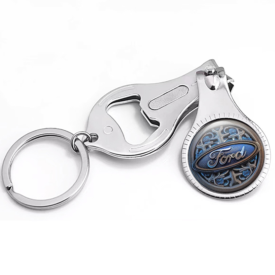 Ford Keyring Holder Nail Trimmer Stylish Blue Tint Floral Logo Design