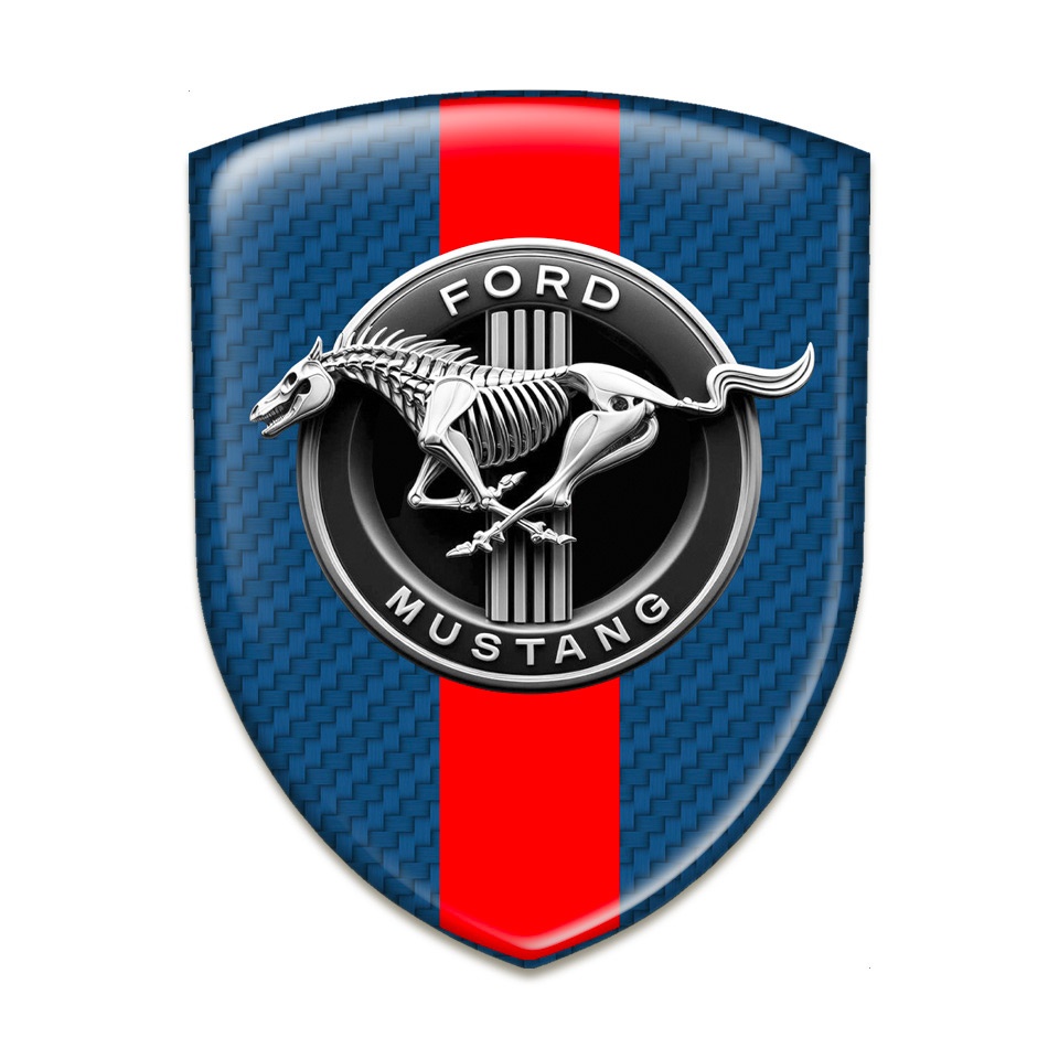 Ford Mustang 3D Gel Emblem Navy Blue Carbon Red Ribbon Design
