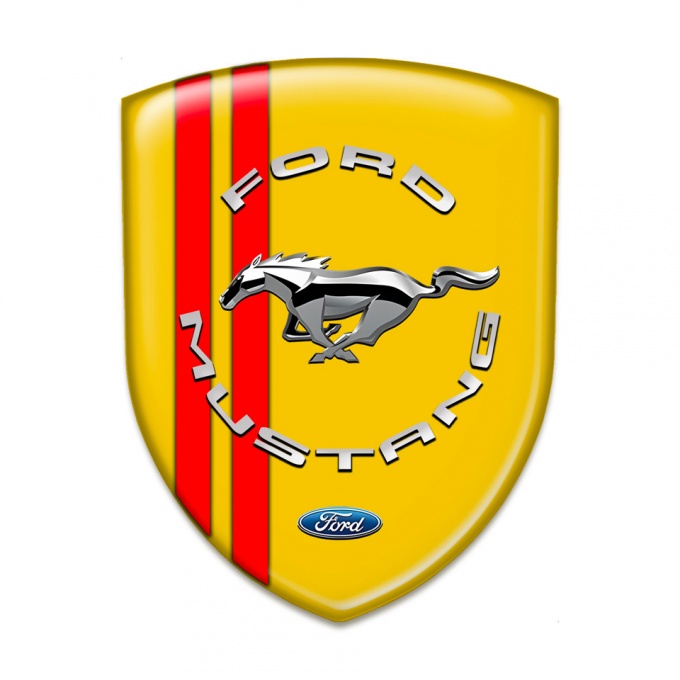 /Ford Mustang Car Interior Badge Yellow with Red Lines Print And Silver Logo