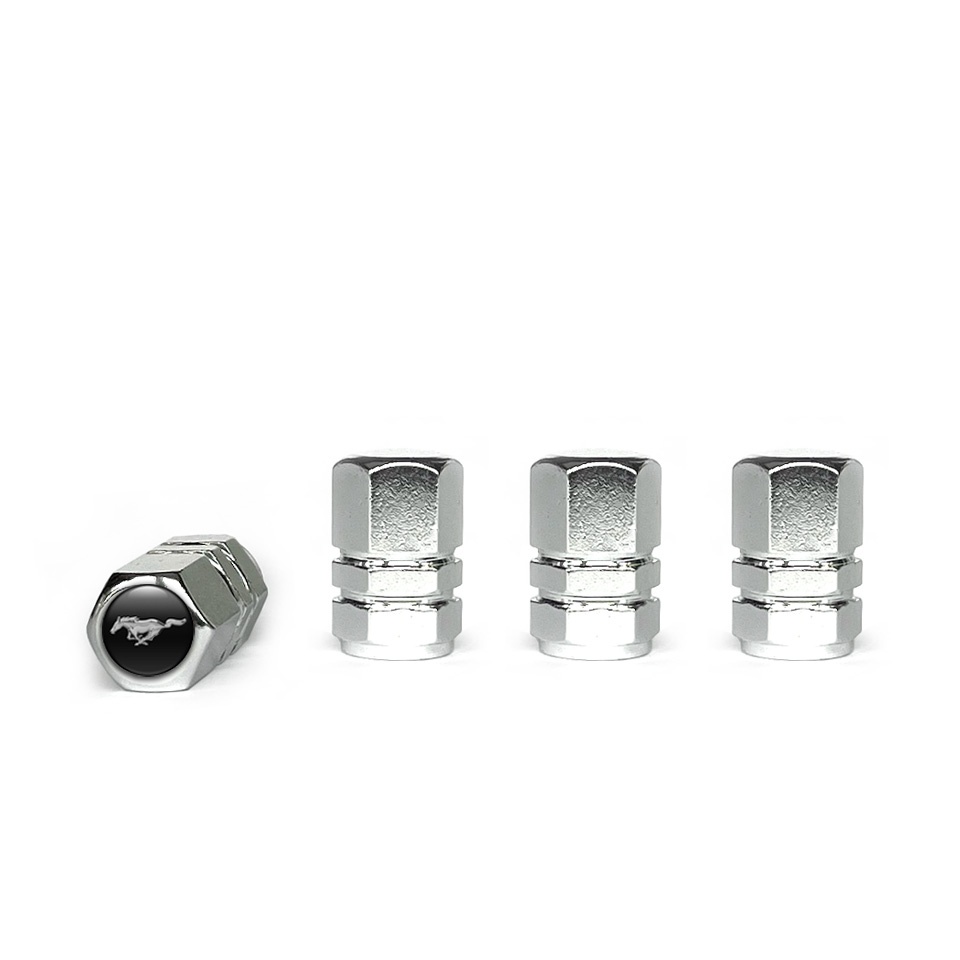Ford Mustang Chrome Valve Caps 4 pcs Black Silicone Sticker