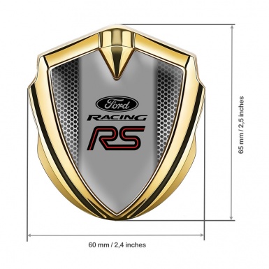 Ford RS Emblem Trunk Badge Gold Metallic Mesh Racing Logo Design