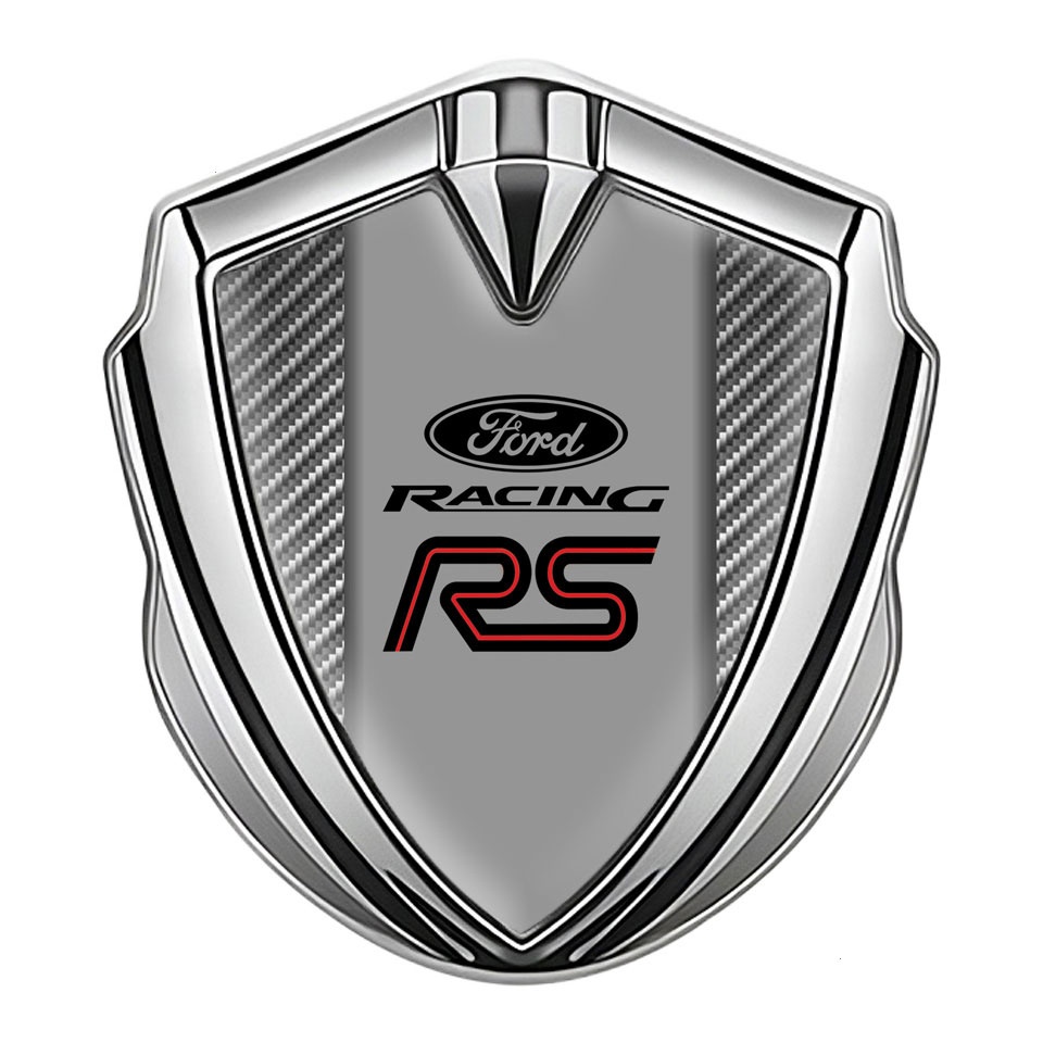 Ford RS Emblem Trunk Badge Silver Light Carbon Pattern Red Line Logo