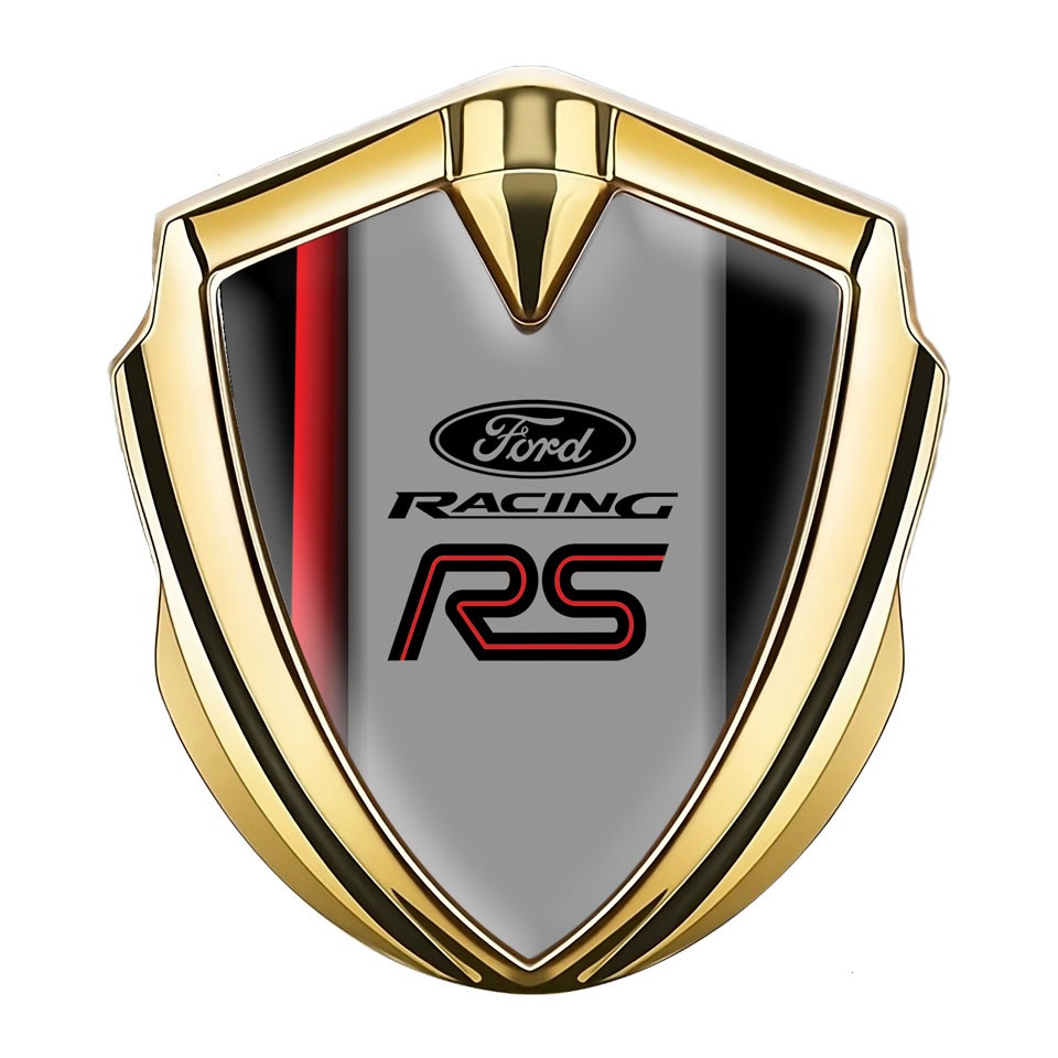 Ford RS Trunk Emblem Badge Gold Black Shade Red Accent Stripe Design