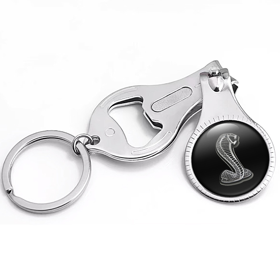 Ford Shelby Cobra Keychain Nail Trimmer Black Grey Bevel Domed Logo