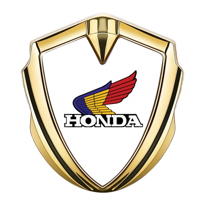 Honda Emblem Fender Badge Gold White Base Tricolor Motif