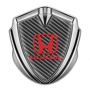 Honda Trunk Emblem Badge Silver Dark Carbon Motif Red Logo