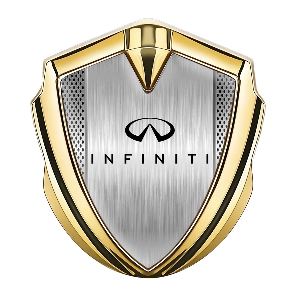 Infiniti Bodyside Domed Emblem Gold Brushed Metal Black Logo Design