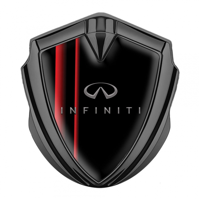 Infiniti Trunk Emblem Badge Graphite Black Background Red Gradient Stripes