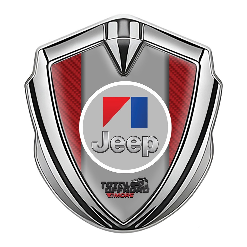 Jeep Emblem Metal Badge Silver Red Carbon Total Offroad Motif
