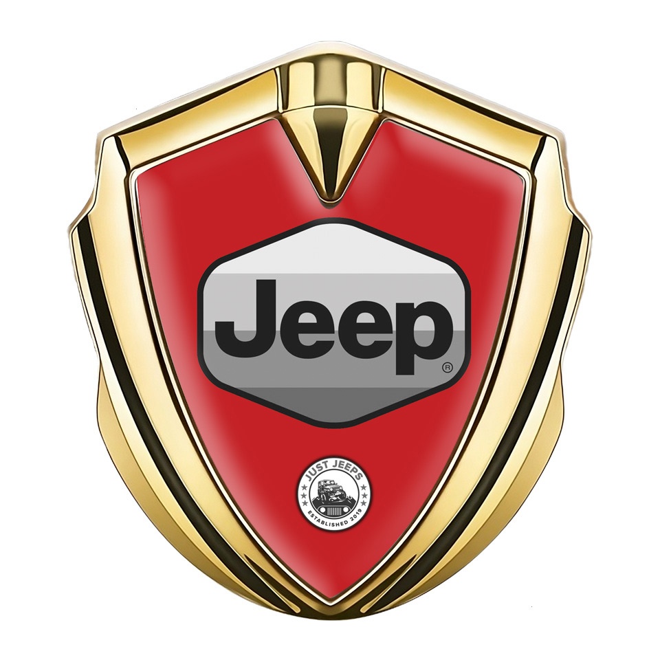Jeep Silicon Emblem Badge Gold Red Base Greyscale Logo Design