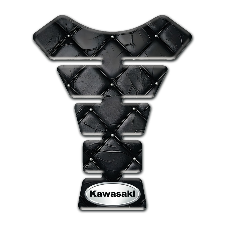 Kawasaki Tank Fuse Black Leather Effect Base and Silver Oval Logo