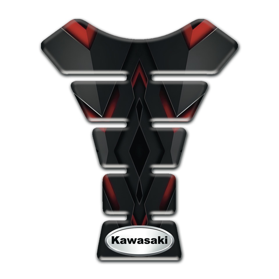 Kawasaki Tank Guard Pads dark Design with Oval Silver Logo