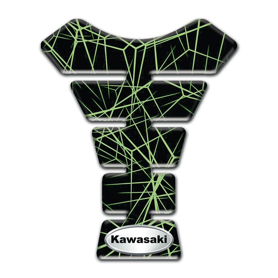 Kawasaki Tank Guard Pads Green Spider Web Edition Oval Logo Style