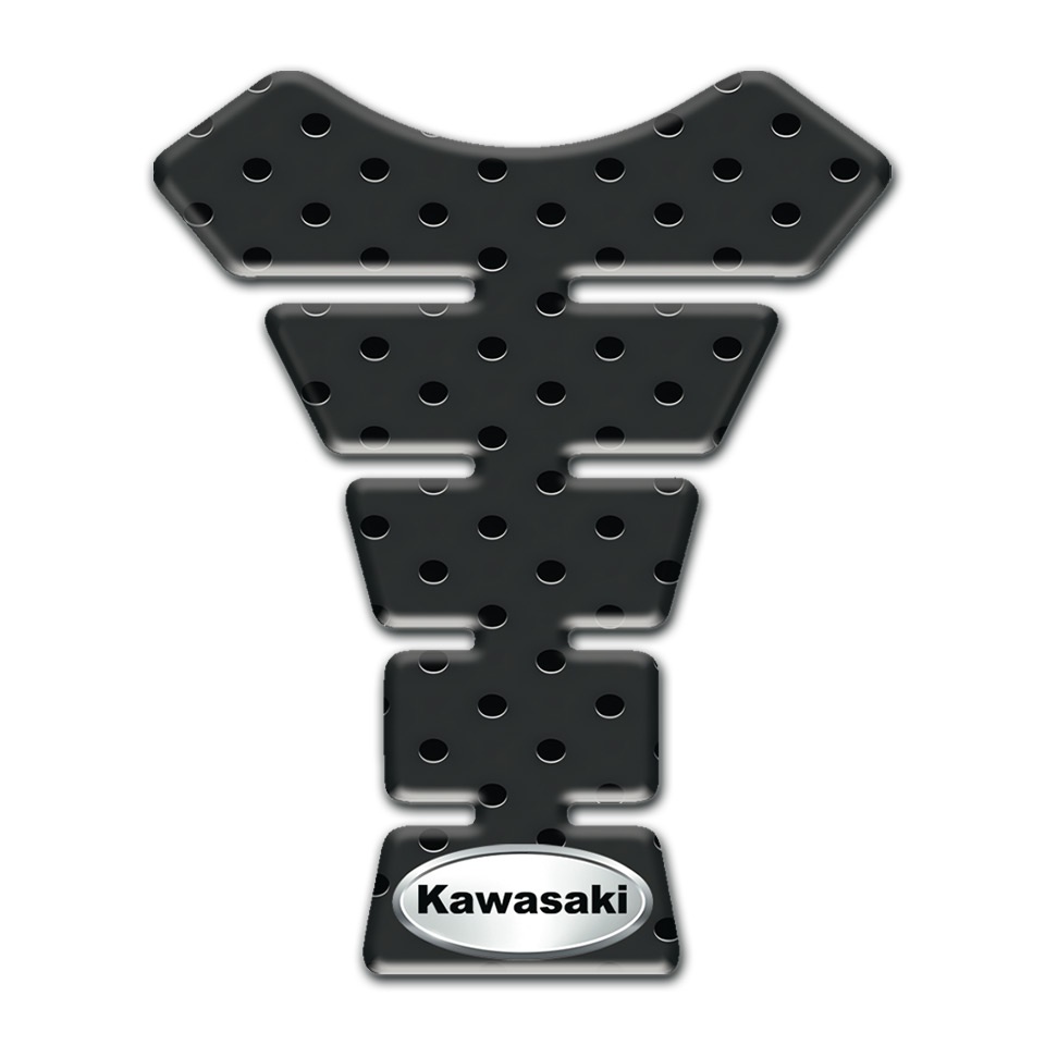 Kawasaki Tank Guard Pads Perforated Black base Oval Silver Logo
