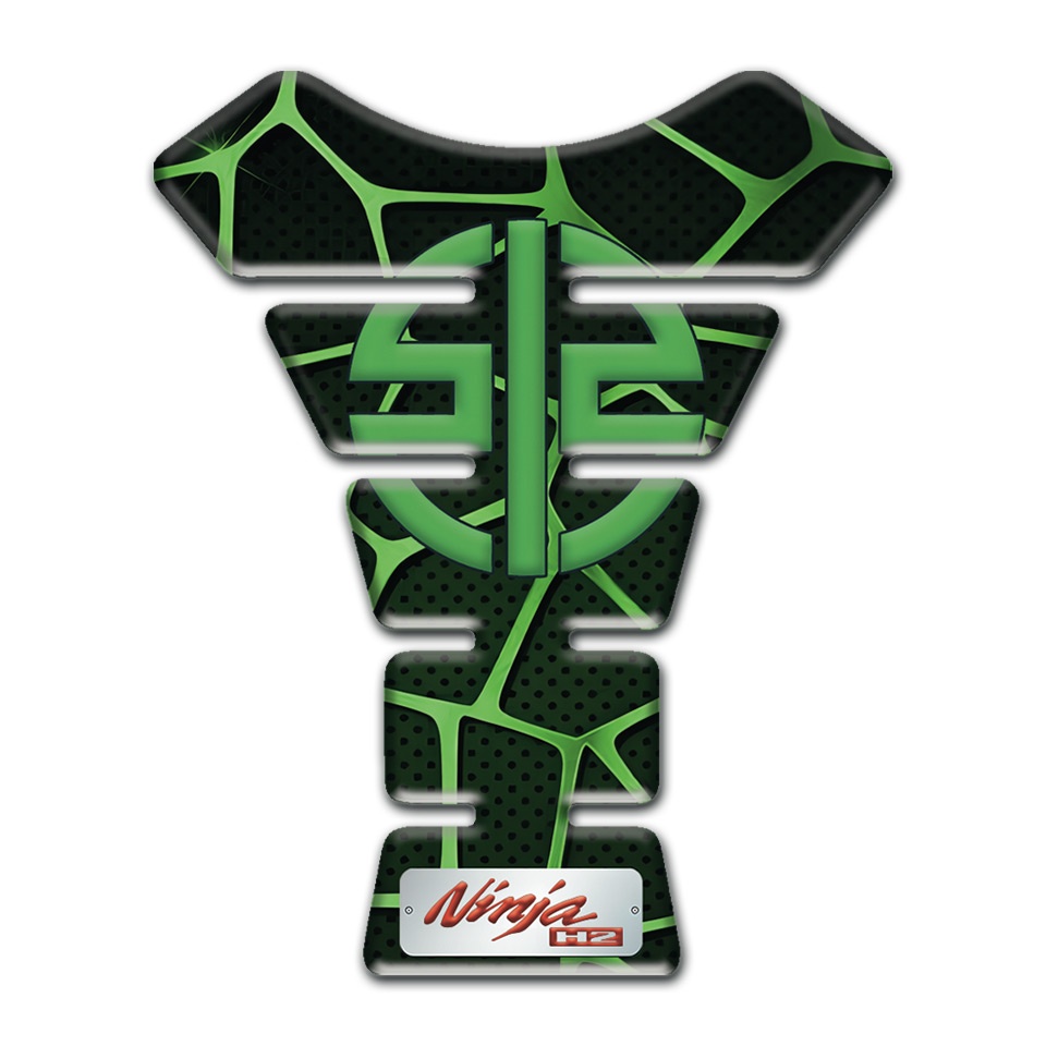 Kawasaki Tank Pad Motorbike Black Base with Green Patterns Type