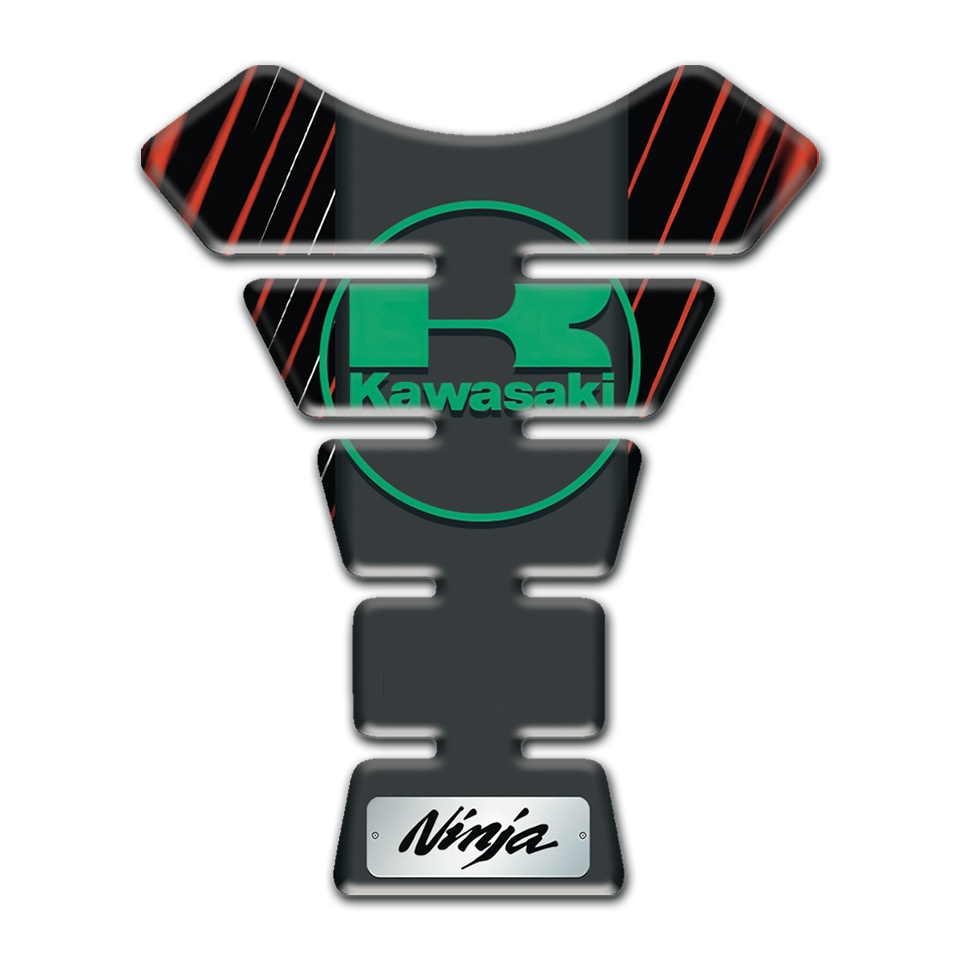 Kawasaki Tank Pad Motorbike Vertical red Stripes Style and Green Logo Design