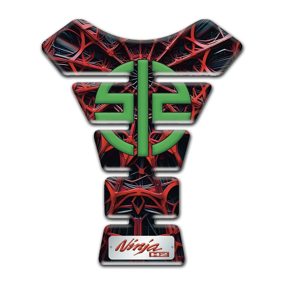 Kawasaki Tank Pad Protector Red Spiderr Web design Green Logo