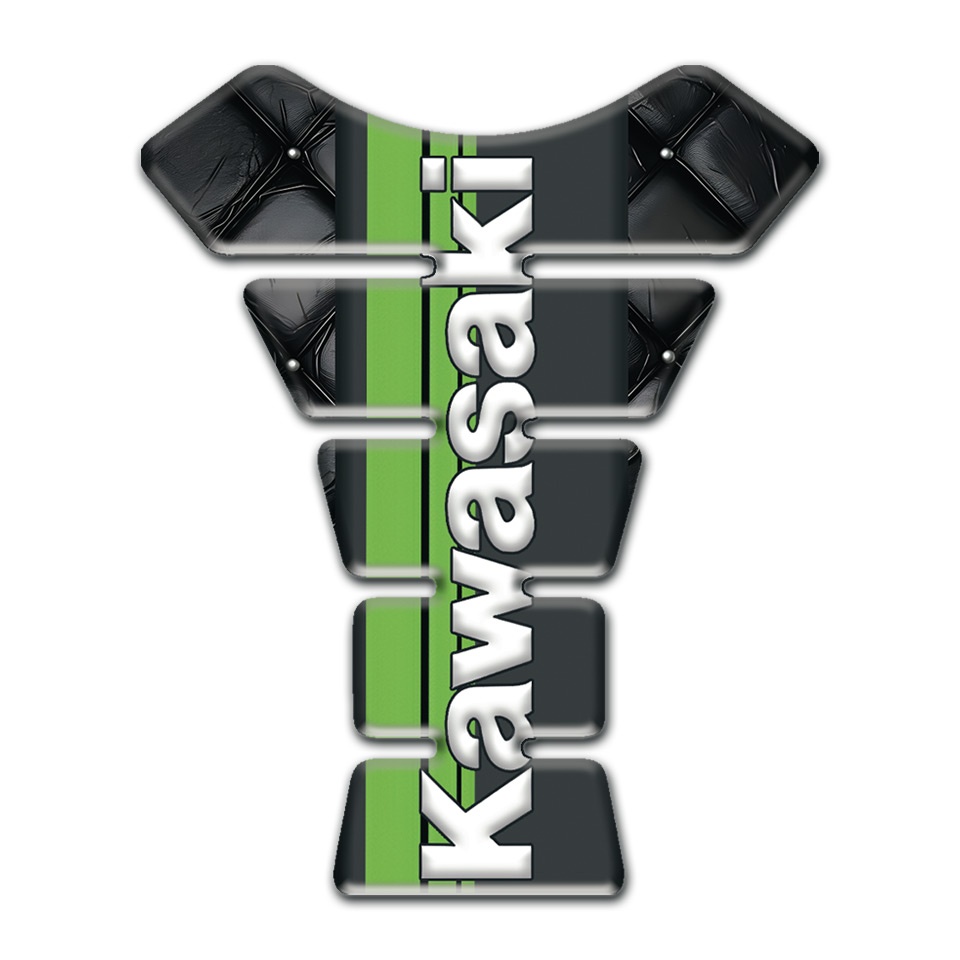 Kawasaki Tank Protector Black Leather Base effect green Tape Logo Style