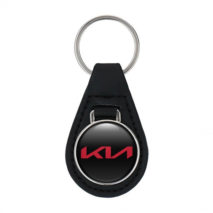 KIA Key Fob Leather Black Red Logo Design