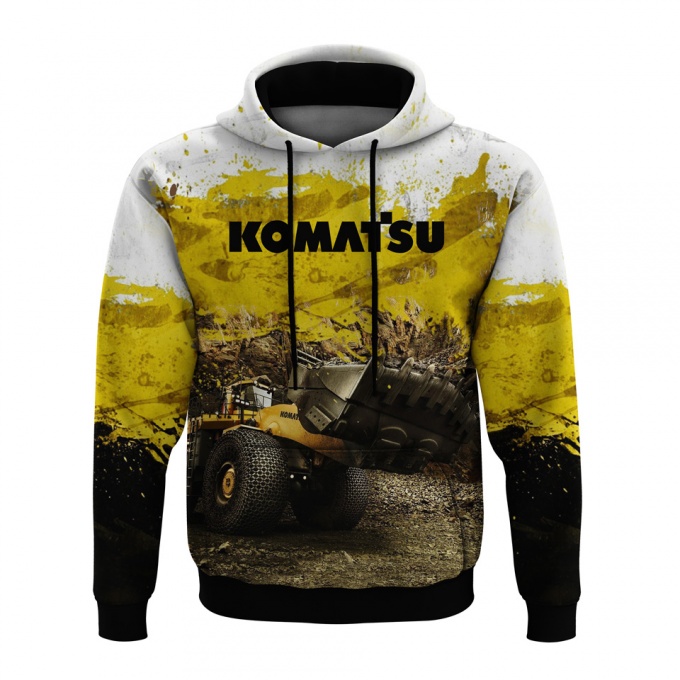 Komatsu Hoodie Black Yellow Excavator Collage Edition