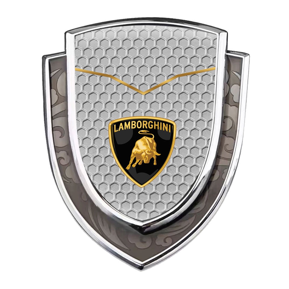 Lamborghini Domed Emblem Silver Grey Hex Classic Shield Logo Design
