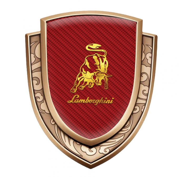 Lamborghini Emblem Car Badge Gold Red Carbon Glimmering Logo
