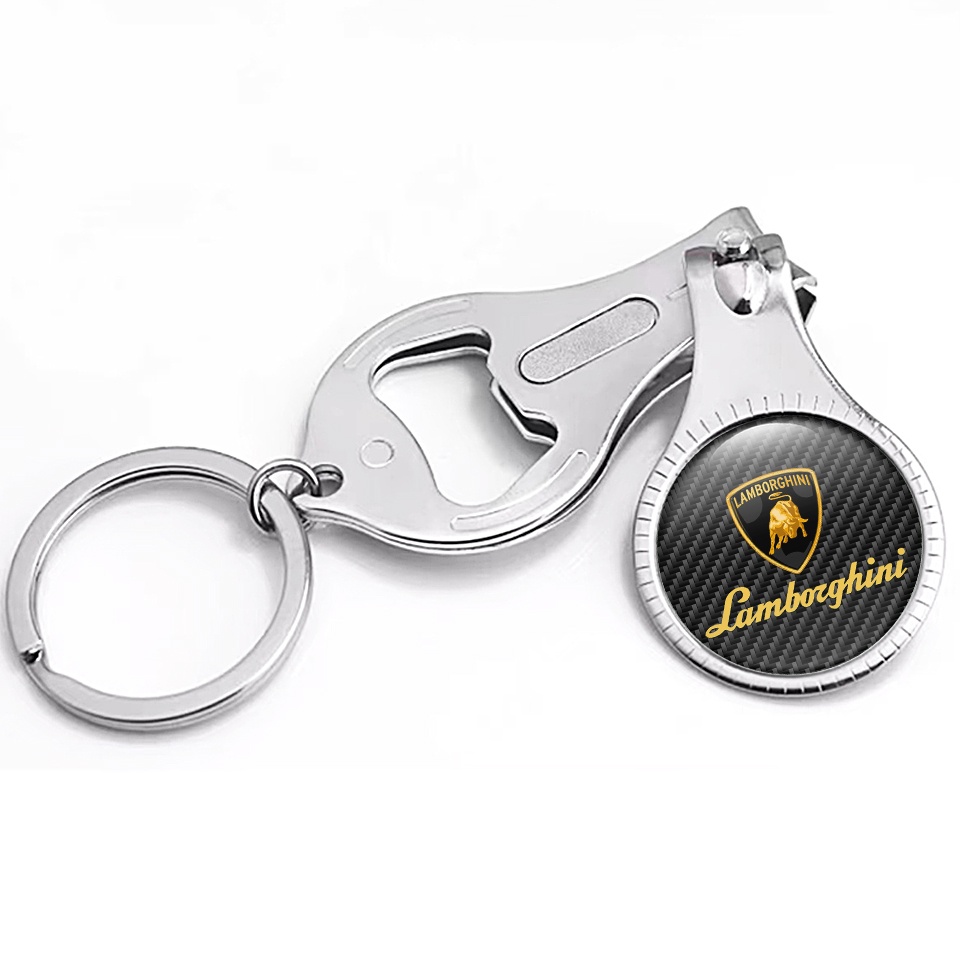 Lamborghini Keychain Fob Ring Nail Trimmer Dark Carbon Gold Shield Slogan Domed Sticker