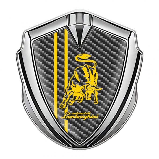 Lamborghini Metal Domed Emblem Silver Dark Carbon Yellow Sport Logo