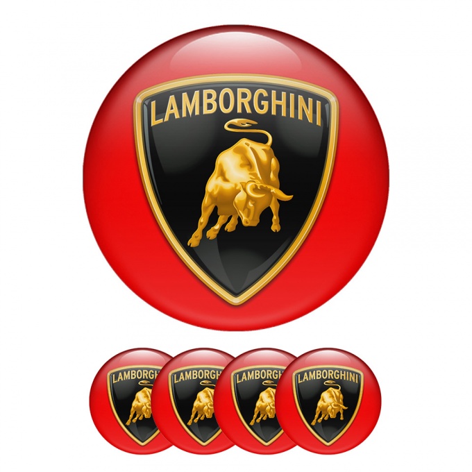 /Lamborghini Wheel Center Caps Emblem Domed Sticker Red printing