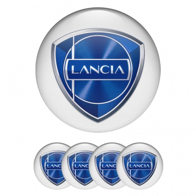 Lancia Emblem for Wheel Center Caps White Base Metallic Logo Effect