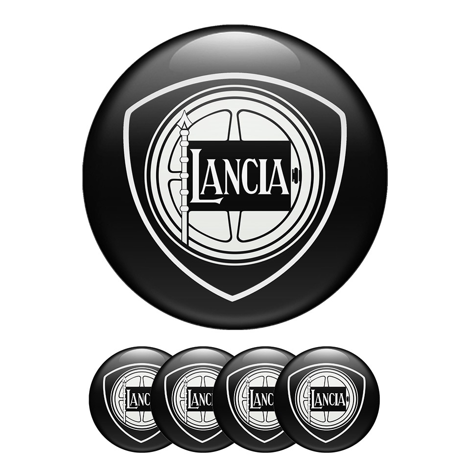 /Lancia Wheel Center Cap Domed Stickers Black Edition