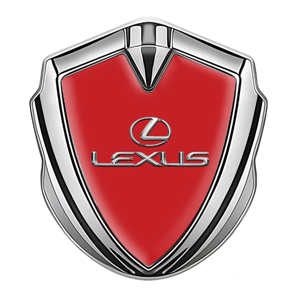 Lexus Badge Self Adhesive Silver Red Base Classic Chrome Logo