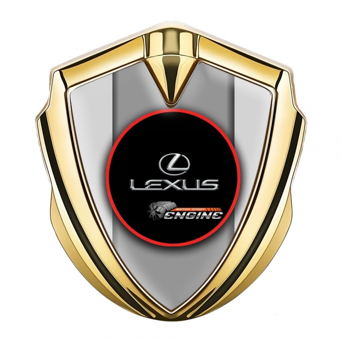 Lexus Bodyside Domed Emblem Gold Grey Base Red Ring Chrome Logo
