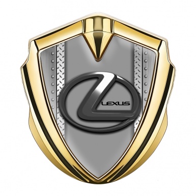 Lexus Emblem Badge Self Adhesive Gold Bolted Frame Dark Steel Logo