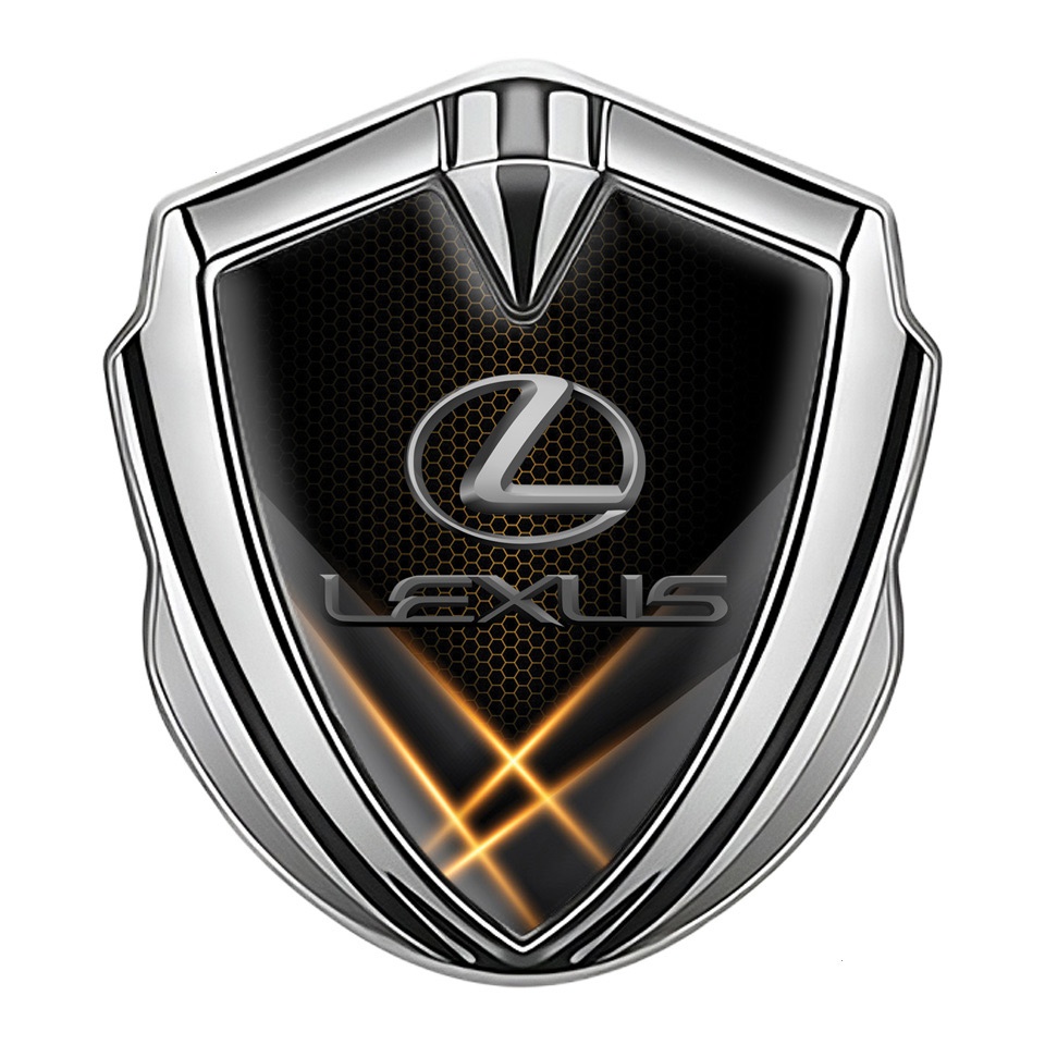 Lexus Emblem Badge Self Adhesive Silver Orange Hex Classic Lead Logo