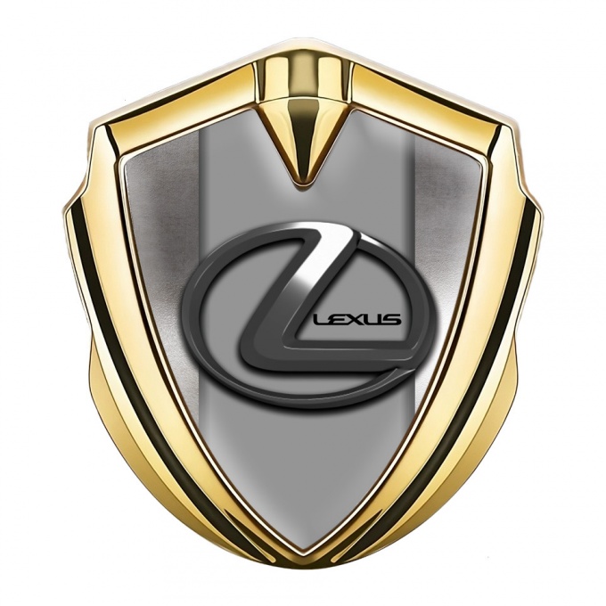 Lexus Emblem Car Badge Gold Polished Metal Grey Dark Steel Logo