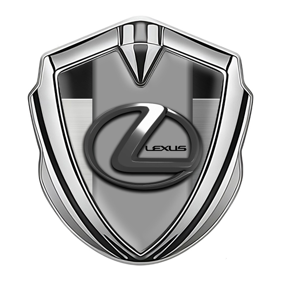 Lexus Emblem Self Adhesive Silver Brushed Plate Grey Dark Steel Logo