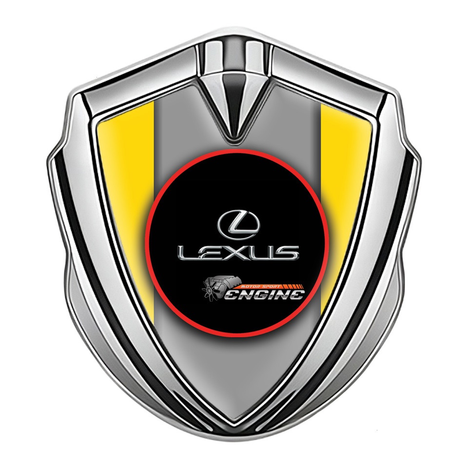 Lexus Fender Emblem Badge Silver Yellow Base Red Ring Chrome Logo
